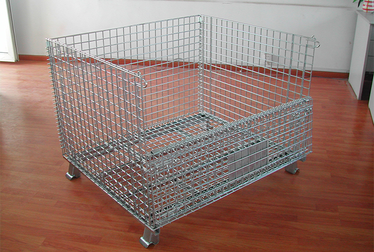 1)采用强力钢丝焊接而成,底部以U形焊接补强,强度高、装载能力大、可叠四层、实现仓储的立体化,不同型号、不同规格的仓库笼承重为0. 8T~2. 0T。