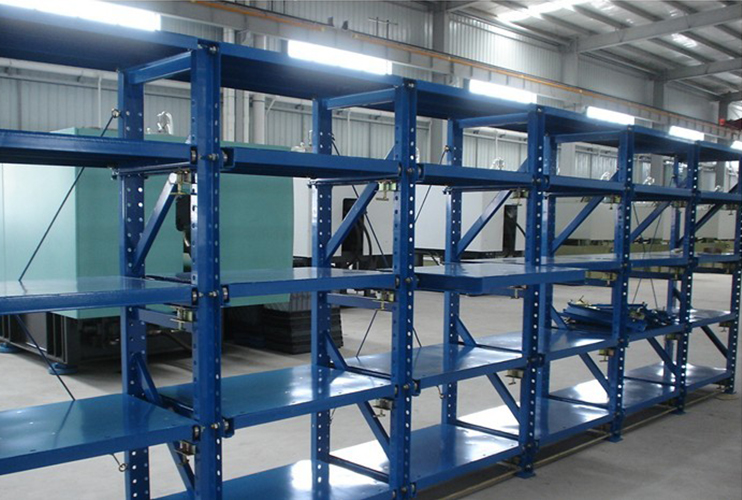 模具货架又称抽屉式货架,主要用于存放各种模具物品:顶部可配置移动葫芦车(手拉或电动),抽屉底部设有滚轮轨道,承载后依然能用很小的力自如地拉动,附加定位保险装置,安全可靠;承重面采用花纹板,可增加摩擦力防止模具滑落等现象。抽屉板可拉出65%,节省场地。根据承载能力可分为轻量型、重量型两种。通常每块抽屉板可承重800- 1000KG抽屉式货架采用轴承组合,滑动平稳,操作轻便,滑动平移并附有独立吊模装置,无需大型行车及叉车。